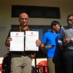 Remise de la deuxième partie du financement du bloc sanitaire par notre coordinateur Dhan aux autorités locales de SIMJUNG