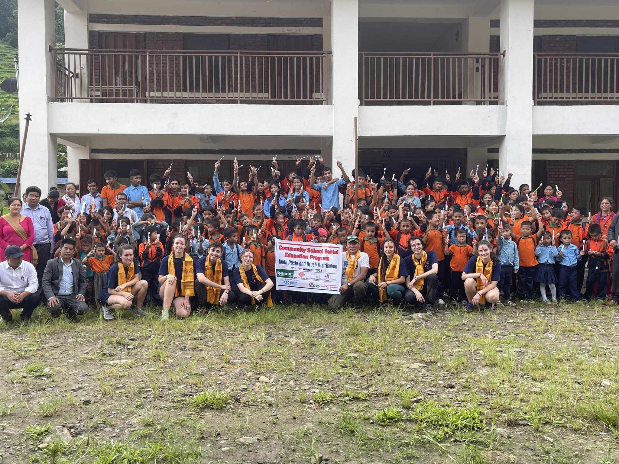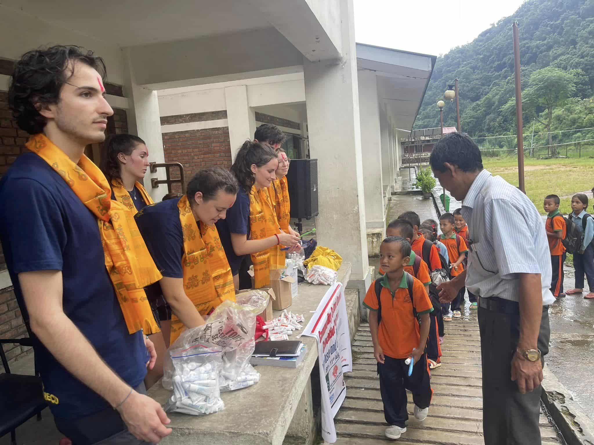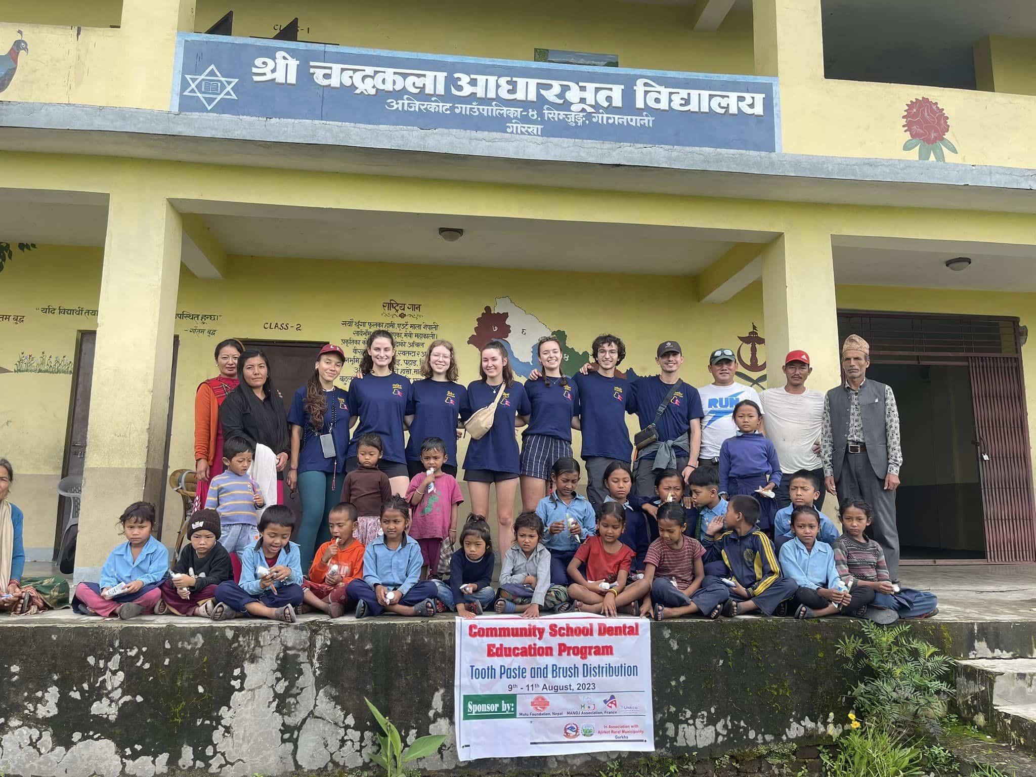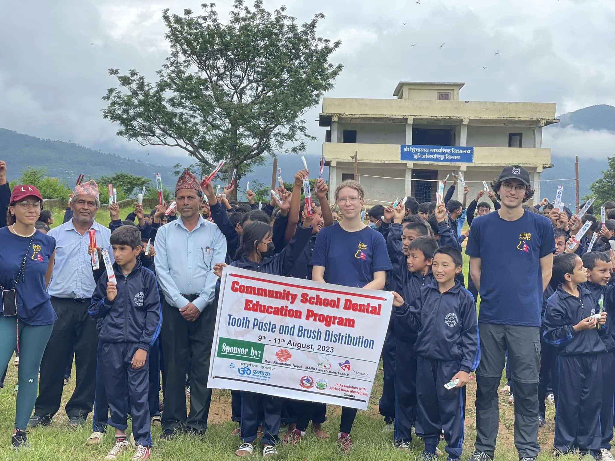 Lola Lopez, Matéo Soto, Lily Kamba, Justine Chapuis, Manon Cael, Lucile Benoît et Sébastien Lachiche, étudiants en médecine dentaire ont réalisé un trek médical en août 2023 dans les écoles de la région d’Ajirkot, puis un camp de santé dentaire dans le village de Simjung. A cette occasion, ils ont délivré des informations sur l’hygiène dentaire et ont distribué des kits dentaires.