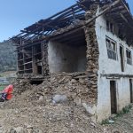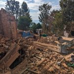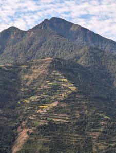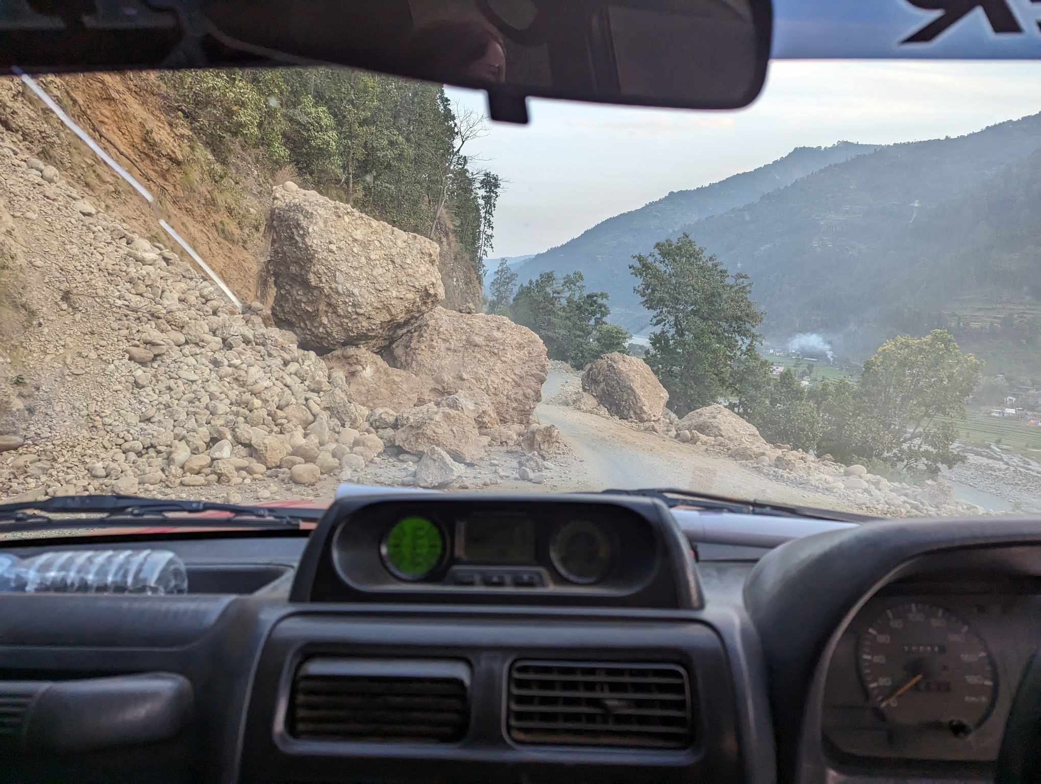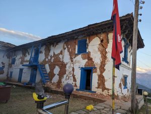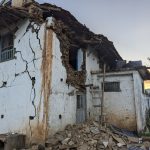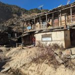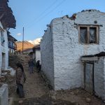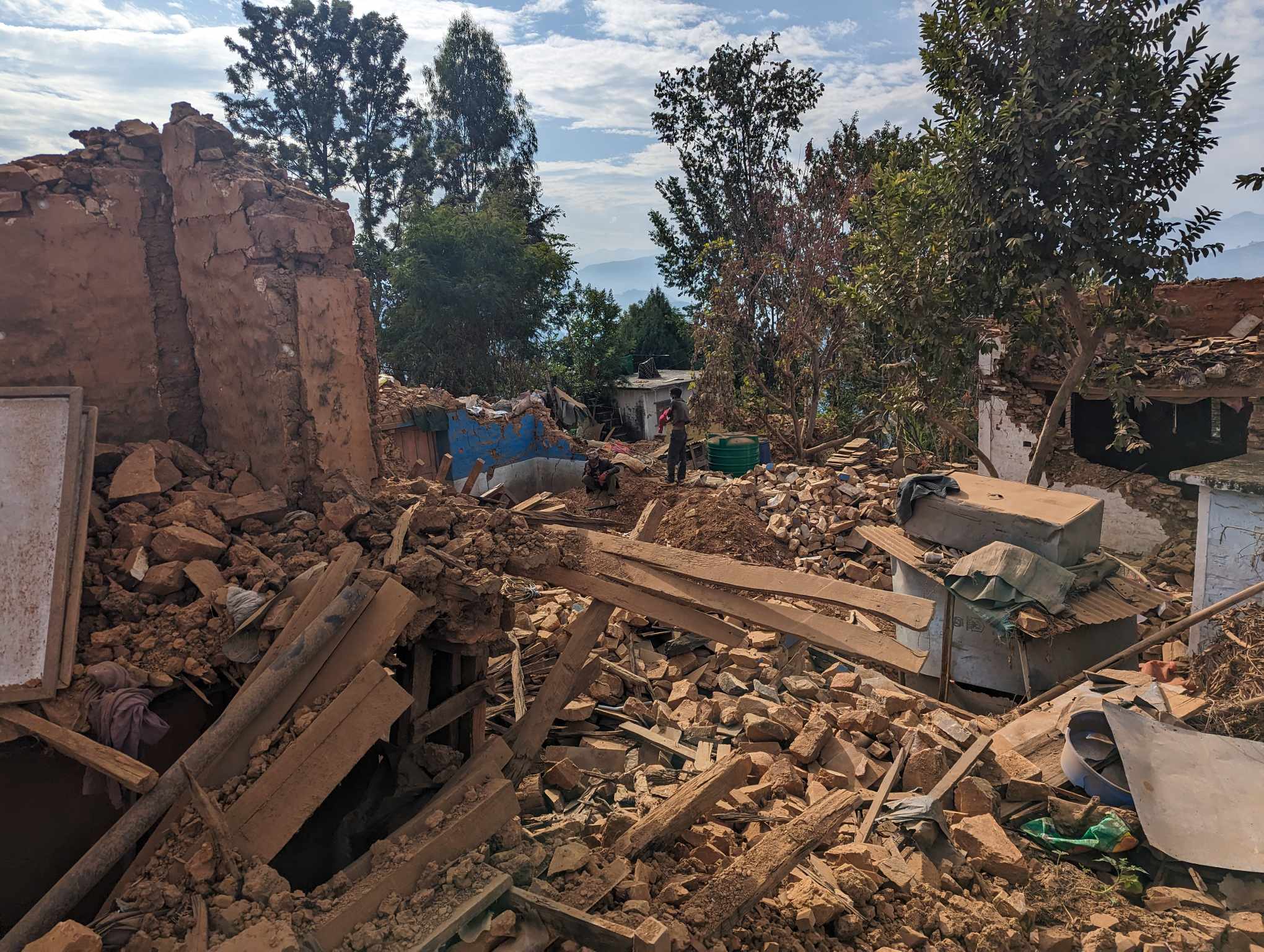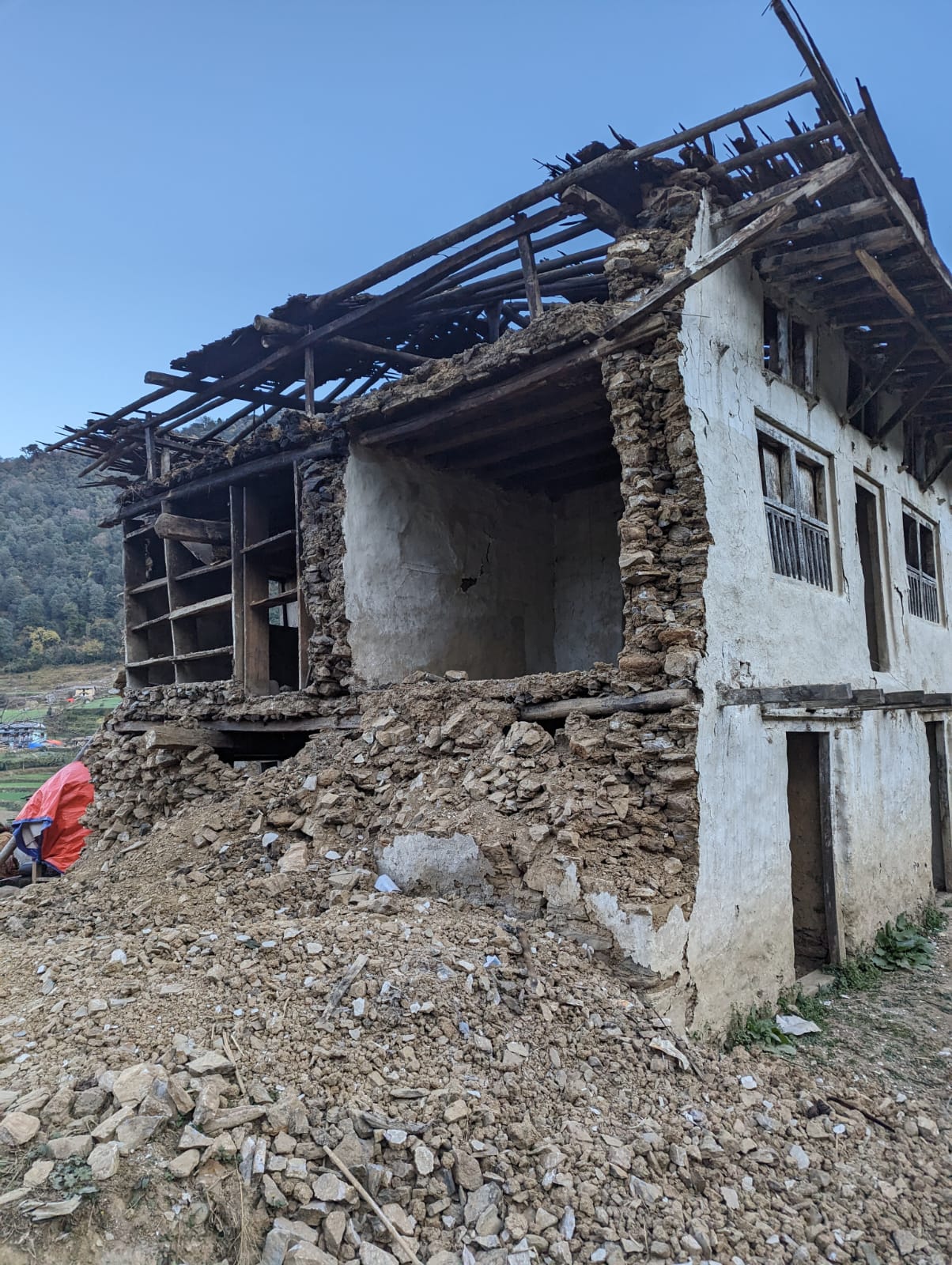 Les maisons traditionnelles en terre et en ardoise sont encore majoritaires, mais l’on voit déjà les premières maisons en mode anti-sismiques qui ont été construites, moins locales. Sur notre trajet, de nombreux villages sont endommagés et de nombreuses maisons sont fissurées.
