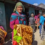 Arrivés au village Rokaya gaon, nous sommes accueillis comme convenu par les autorités locales. Le responsable de la commune, Mr Vir Bahadur Giri nous a accompagné vers le village de Ramidada où les Dalits (intouchables) vivent en communauté. Le village et les maisons sont moins détruites qu’il n’a été dit dans la presse mais des toits sont détruits, des maisons lézardées et abandonnées de leurs propriétaires. Des tentes sont installées à travers le village. L’hiver s’installant, notre aide sera la bienvenue. C’est le maire du village, Mr Bahadur Gharti, qui a organisé, via un listing des sinistrés, la distribution des couvertures.