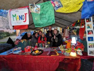 Pendant ce temps-là en France… l’équipe Manoj Breizh a proposé un stand lors d’un marché de Noël. L’occasion de vendre le café produit par Dhan dans la communauté de Simjung, ainsi que de l’artisanat népalais. Le tout au profit de l’association. Merci à la joyeuse équipe !