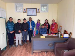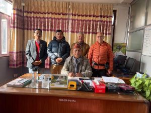 Dimanche 10 décembre : Thierry, Dhan et Maëva ont été accueillis à la mairie de Bachchek. Un village proche de Simjung, bien connu de l’association puisqu’elle a permis la création d’un centre de la vision inauguré en janvier 2022, plusieurs camps de santé y ont également été réalisés. Nous avons aussi participé à l’achat du matériel médical, dont une ambulance, à l’époque où le dispensaire était peu équipé. C’est aussi dans le dispensaire de Bachchek qu’une partie du suivi médical des femmes enceintes est assuré, dans le cadre du projet Aamako Maya.