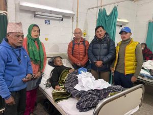 L’équipe a également emmené un nouveau patient en urgence dans un hôpital de Patan pour une prise en charge. Victime d’une chute lors d’un chantier de construction, il a été victime d’un gros traumatisme cranien. Le couple, originaire de Tokarpur (dans le Ramechchap) attend son premier enfant, on leur souhaite un bon rétablissement.