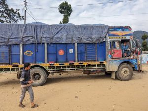 Après une visite des lieux nous avons rencontré le second préfet du district. Par l’intermédiaire de Dhan les autorisations nous sont accordées rapidement et la partie administrative sera réglée demain matin (déclaration du don) , avant de nous rendre directement au village le plus sinistré. Nous attendons actuellement encore le camion qui achemine la plus grosse partie du stock de couverture, il va arriver dans la nuit.