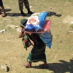 Des largages de bâches et de marchandises, de provenance inconnue, ont été faits par hélicoptères. Dhan nous a signalé que cette procédure d’aide a engendré des courses