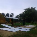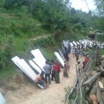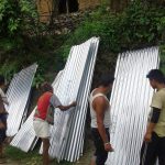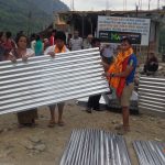 Une distribution de tôles métalliques a été réalisée pour une centaine de maison ( nous devrions dire famille… ) dans différents villages ( Banjhe, Harengaderi, Arena dada, Gogompani ). Ces tôles ont apporté un peu plus de « confort » pour affronter dans de meilleures dispositions la mousson à venir.