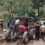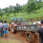 - Dhan en présence du conducteur du tracteur pour l’acheminement du riz vers les villages